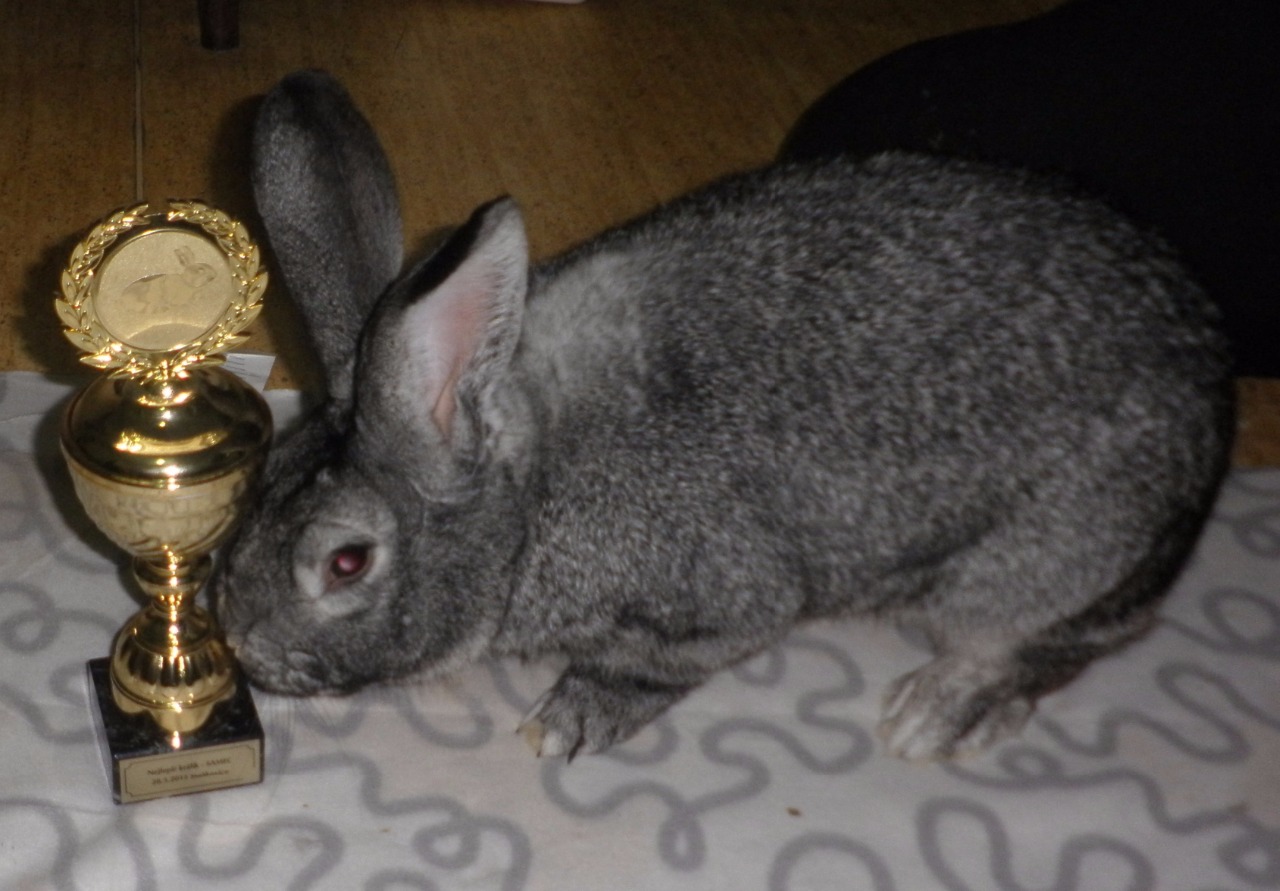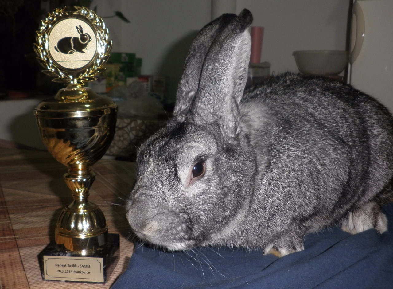 1. cena pro našeho "Činčiláka" - nejlepší králík - samec výstavy 95,5 bodů ze Staňkovické výstavy ze dne 28. 3. 2015